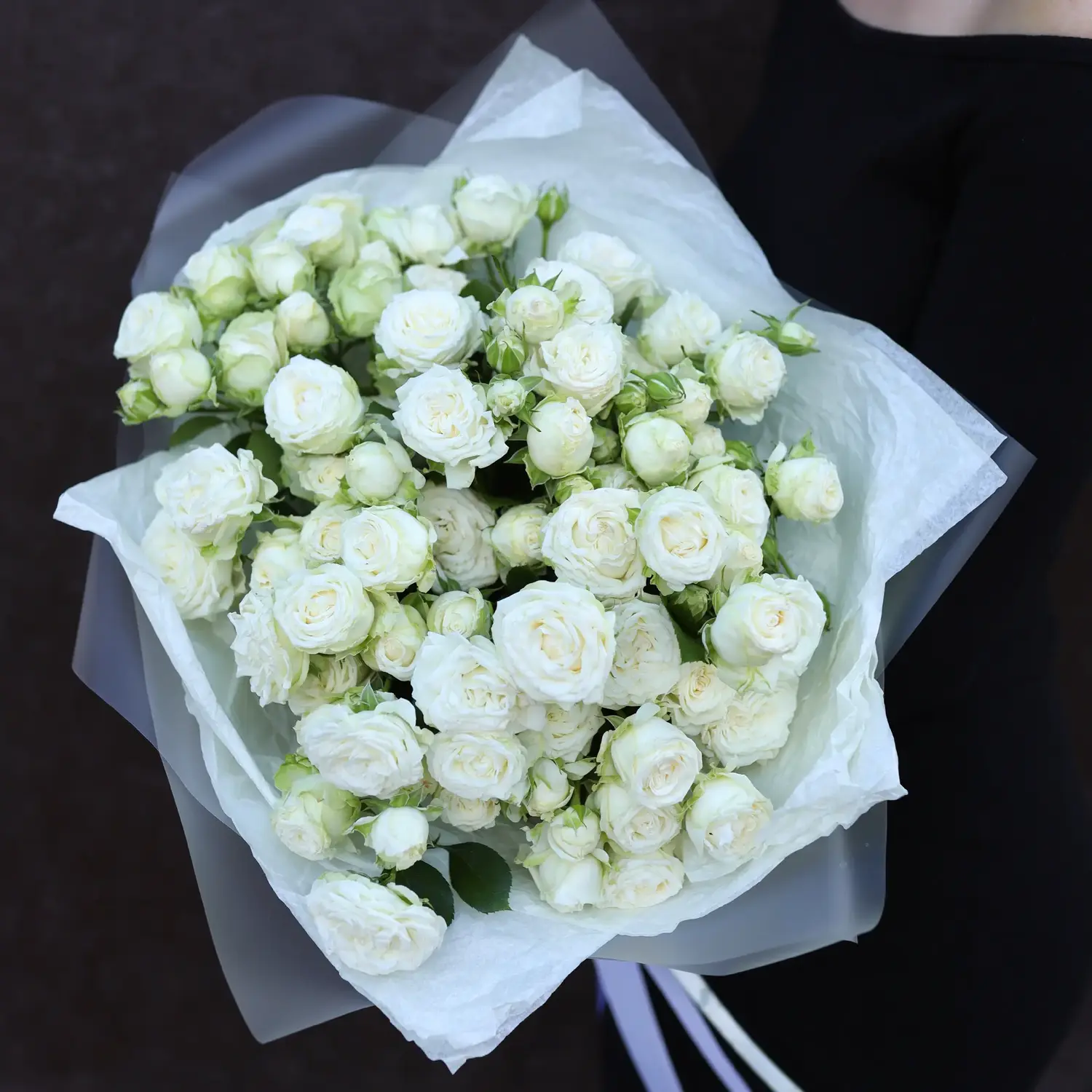 Моно букет из белой кустовой розы