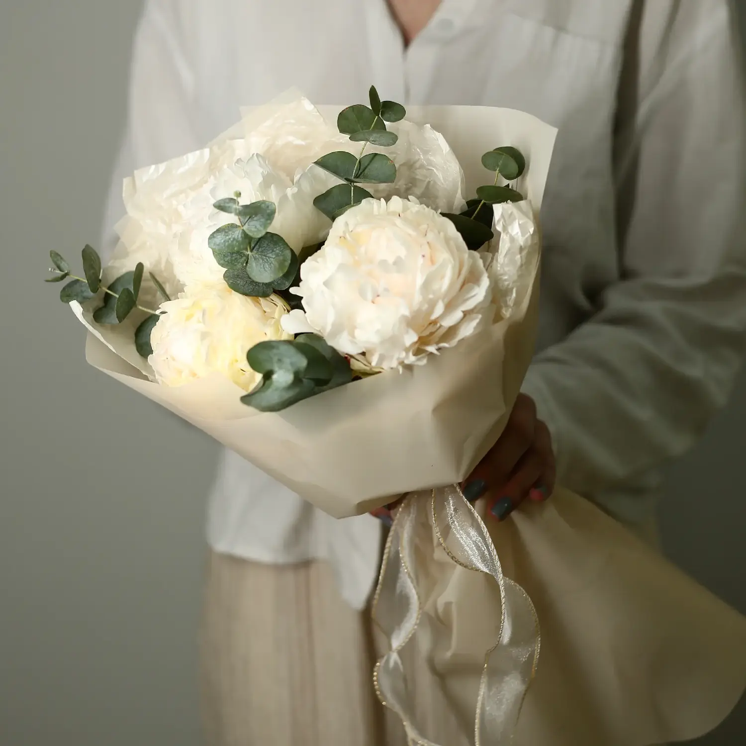 Моно букет из белых пионов