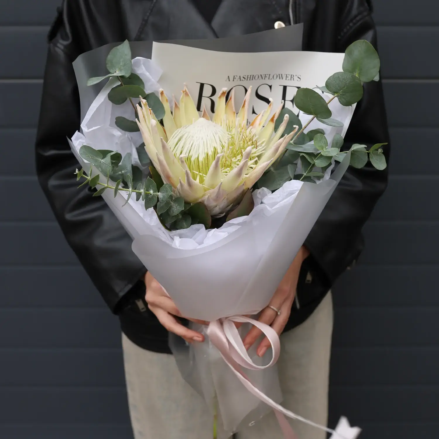 Букет из белой протеи с добавлением ароматного эвкалипта