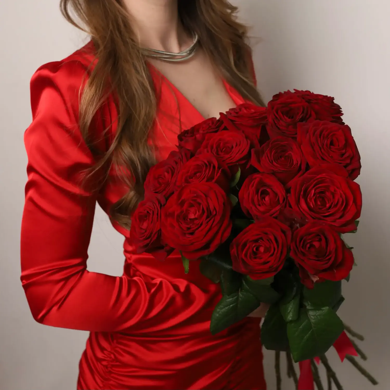 Моно букет из 15-ти красных роз