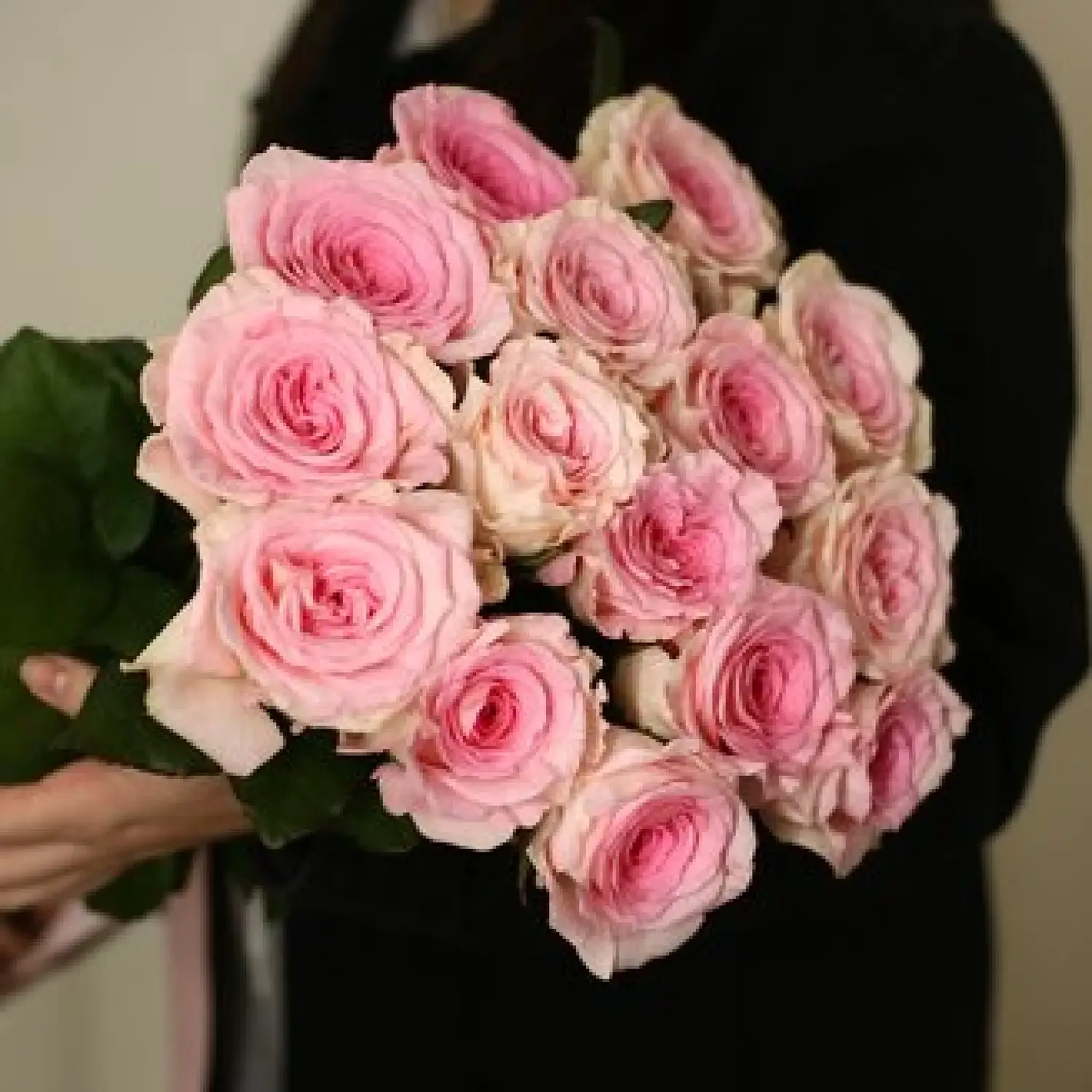 Моно букет из 15-ти розовых роз