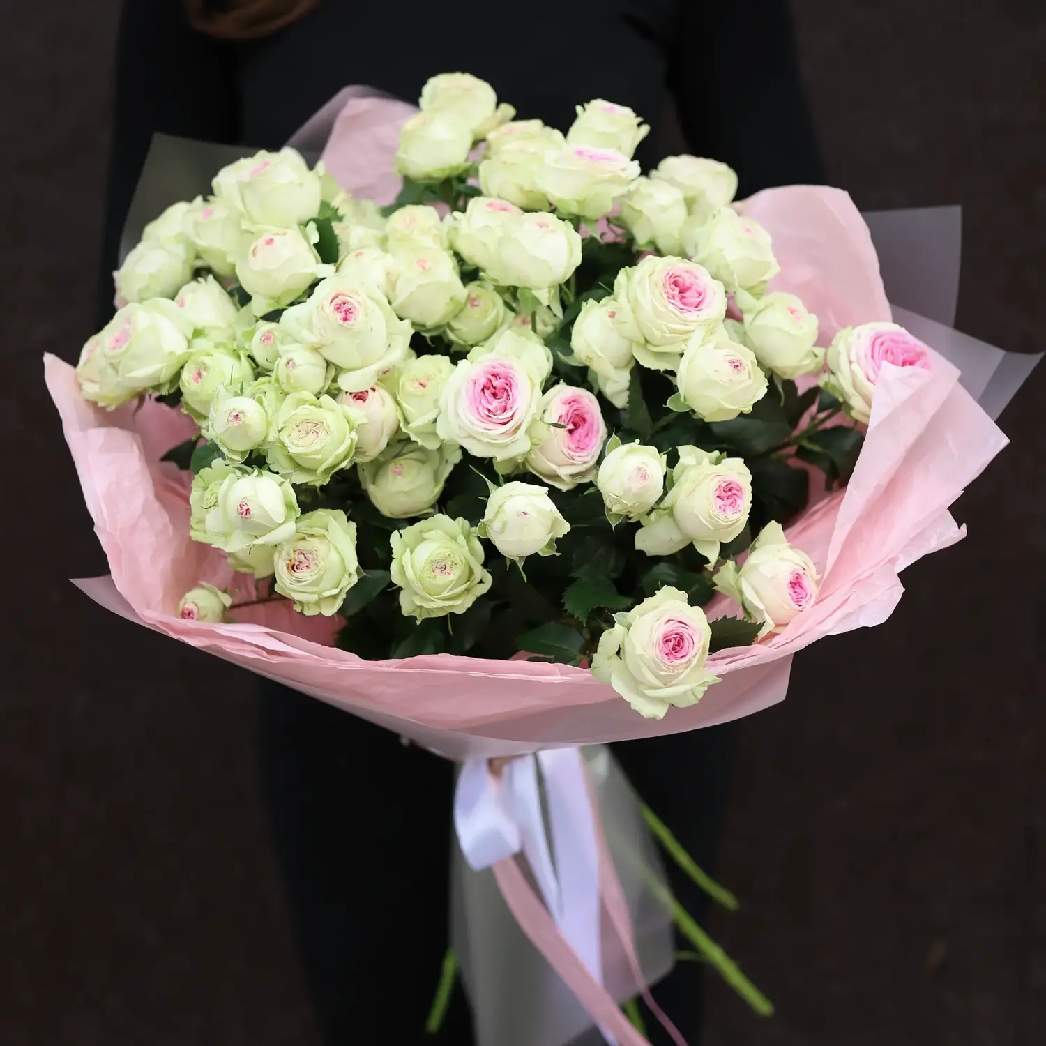 Моно букет из бело-розовой кустовой розы