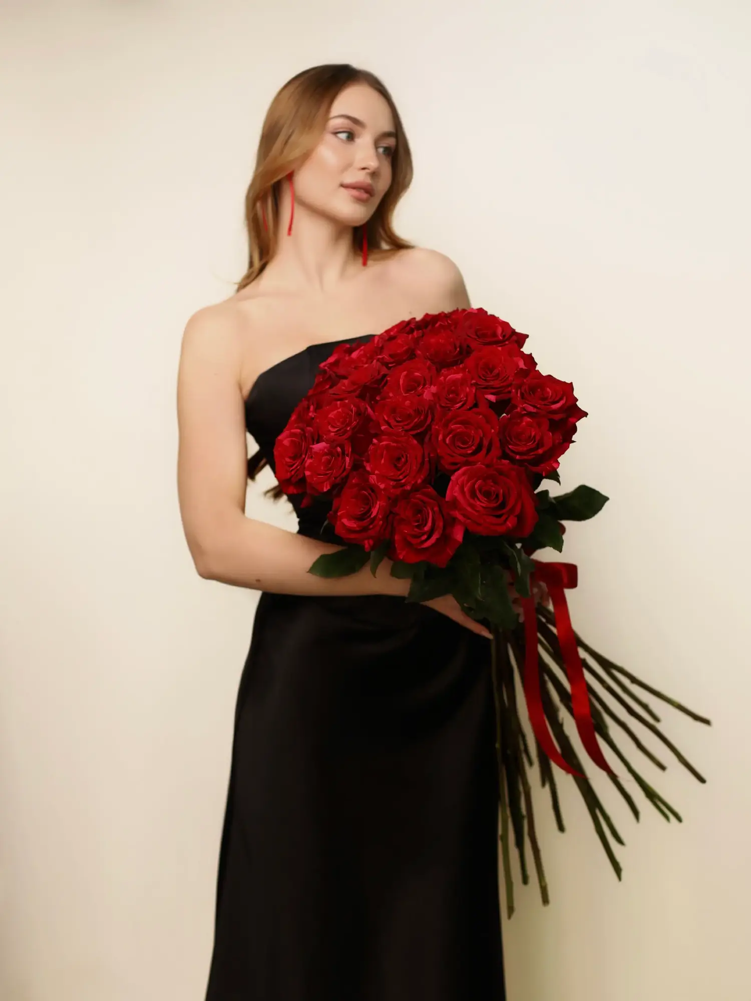 Моно букет из 25-ти красной эквадорской розы сорта Пантера