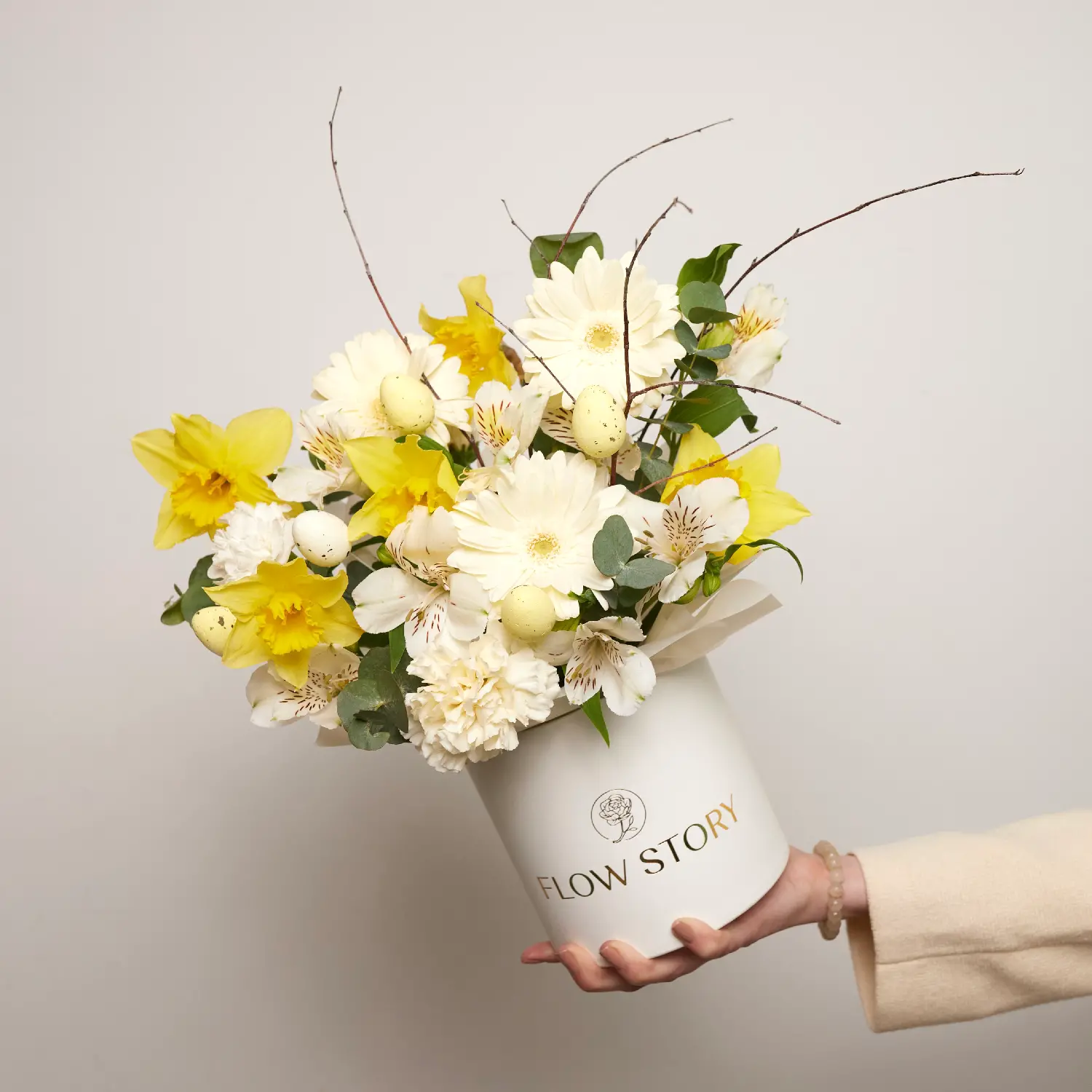 Состав: Нарцисс, Гербера, Альстромерия, Диантус, Зелень