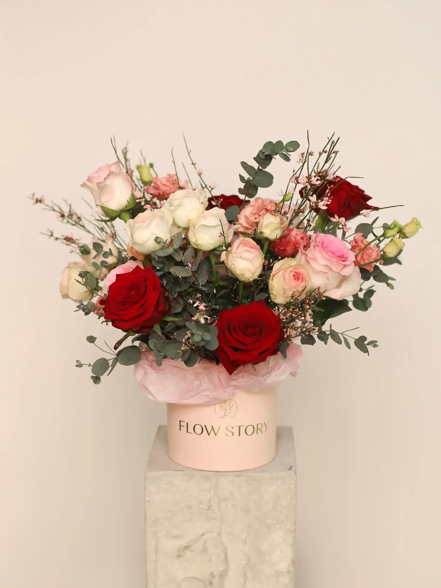 Яракая авторская композиция в сочетании одноголовых и кустовых роз
