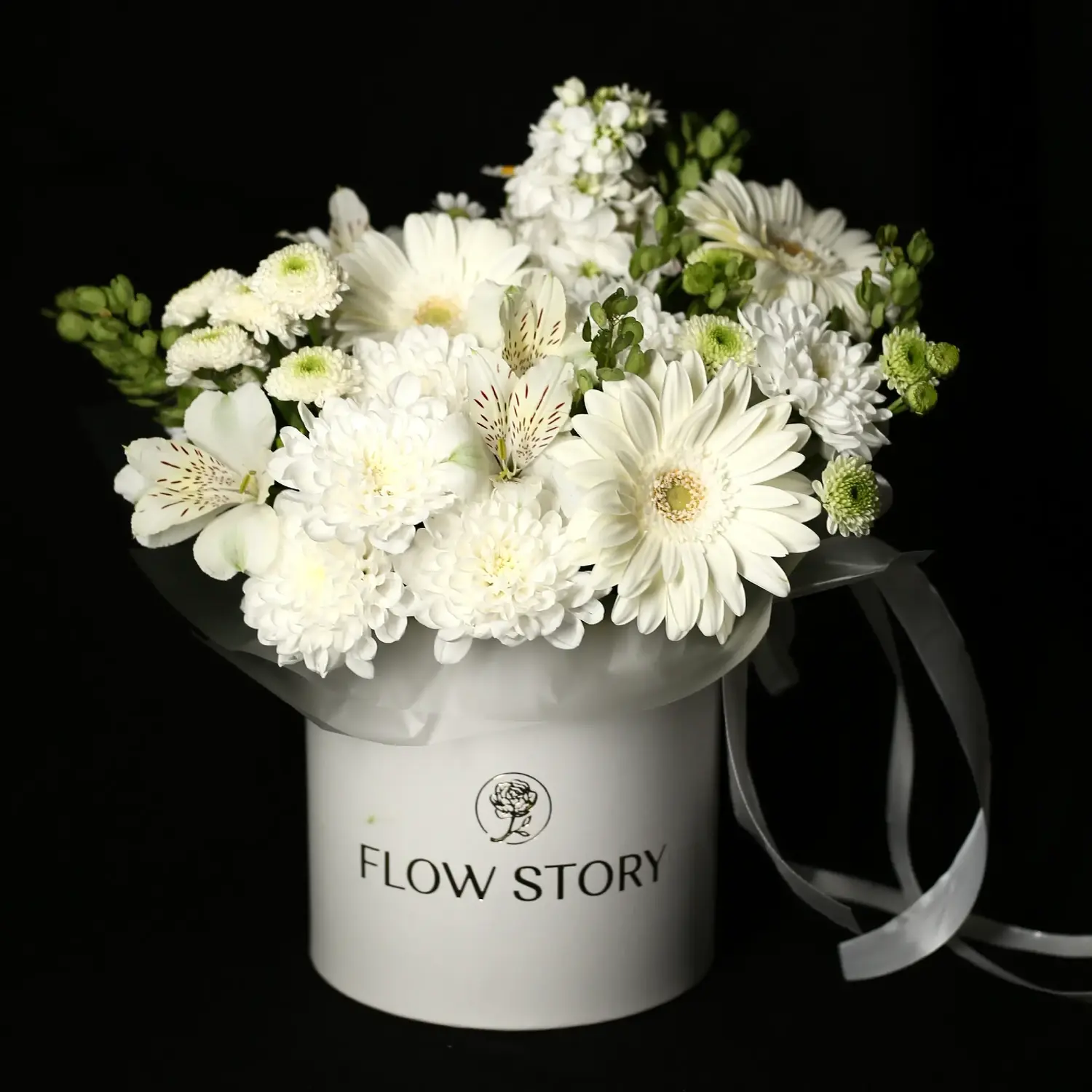 Композиция в белых оттенках и кустовой хризантемы, сантини и герберы
