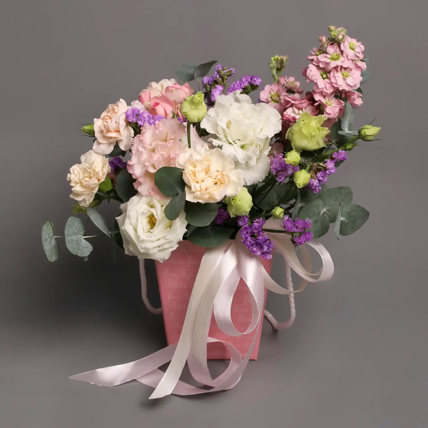 Состав: Диантус, Зелень, Маттиола, Статица, Роза, Эустома