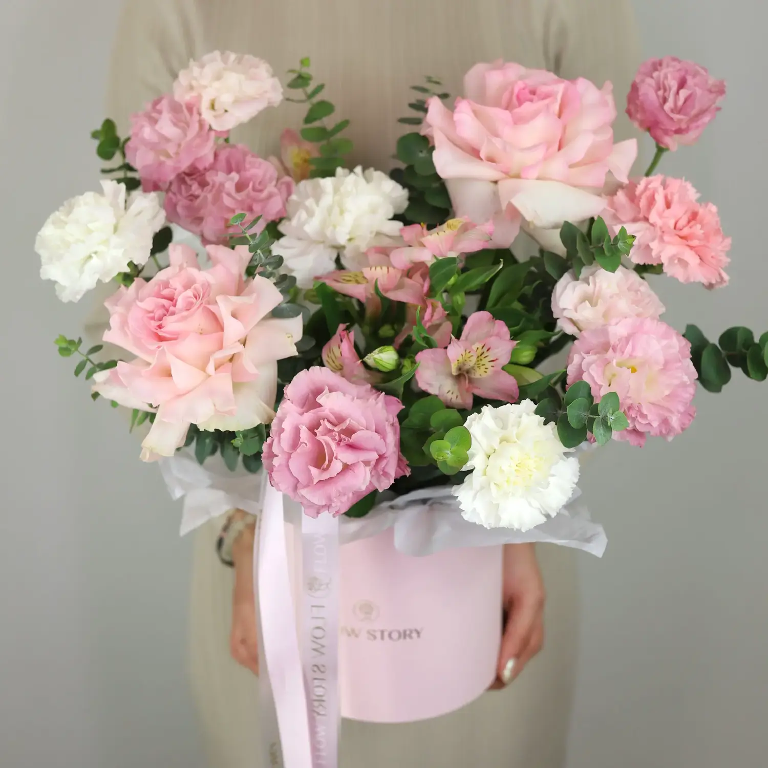 Состав: Диантус, Зелень, Роза, Эустома, Альстромерия